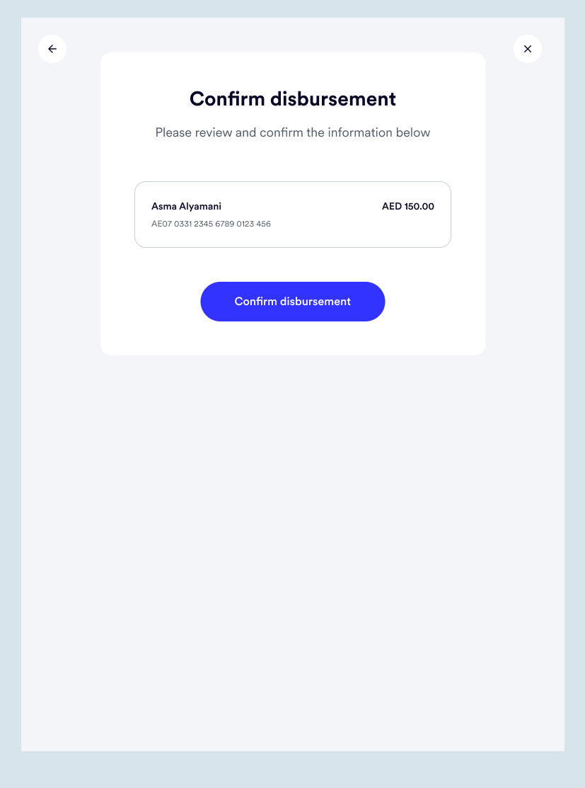 After the details are entered, there is a preview of the details entered before the disbursement is confirmed.