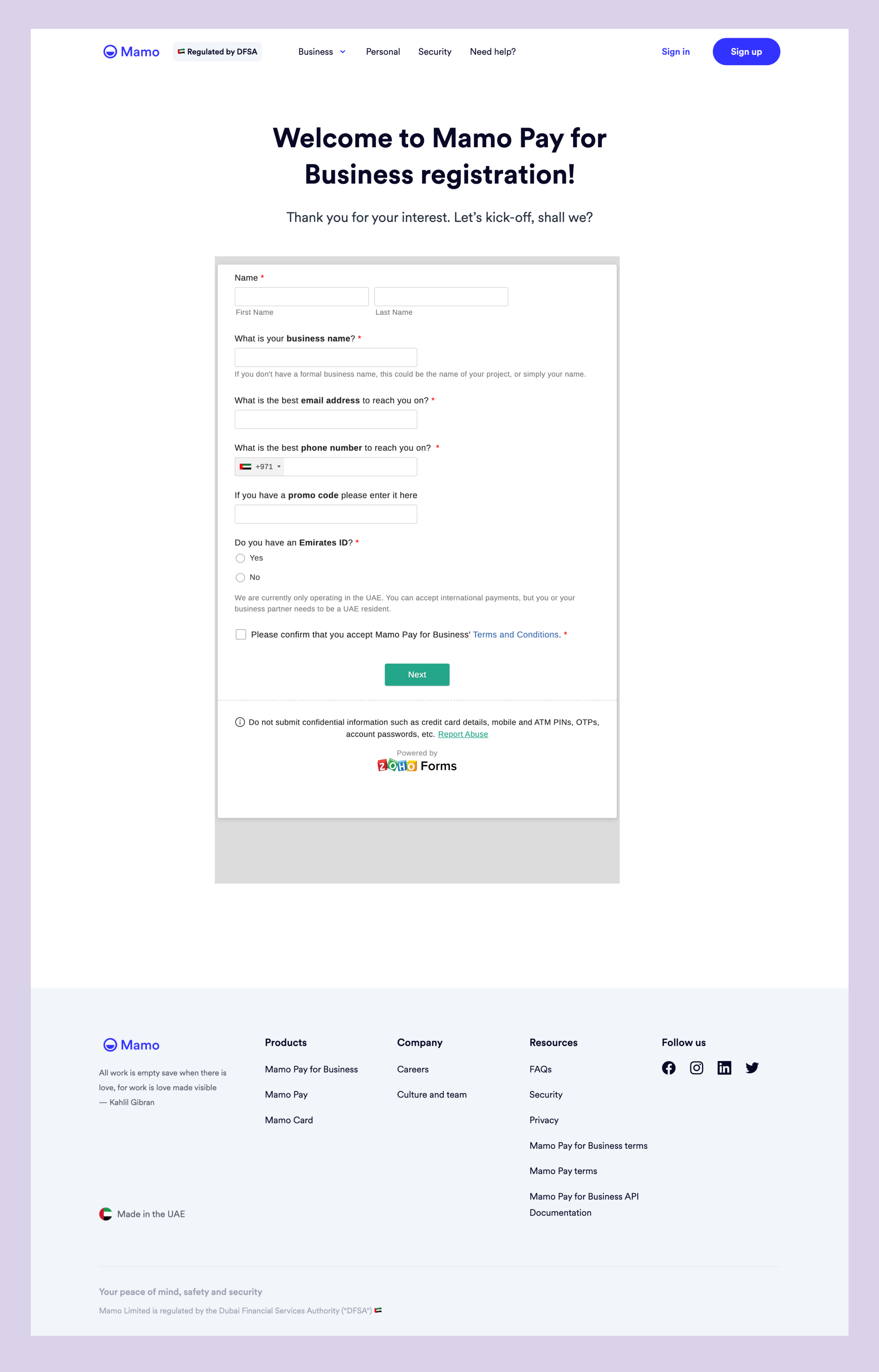 When I started to work on this project, the registration and business verification journey, hosted on Mamo website through Zoho form, was somewhat overwhelming for users.