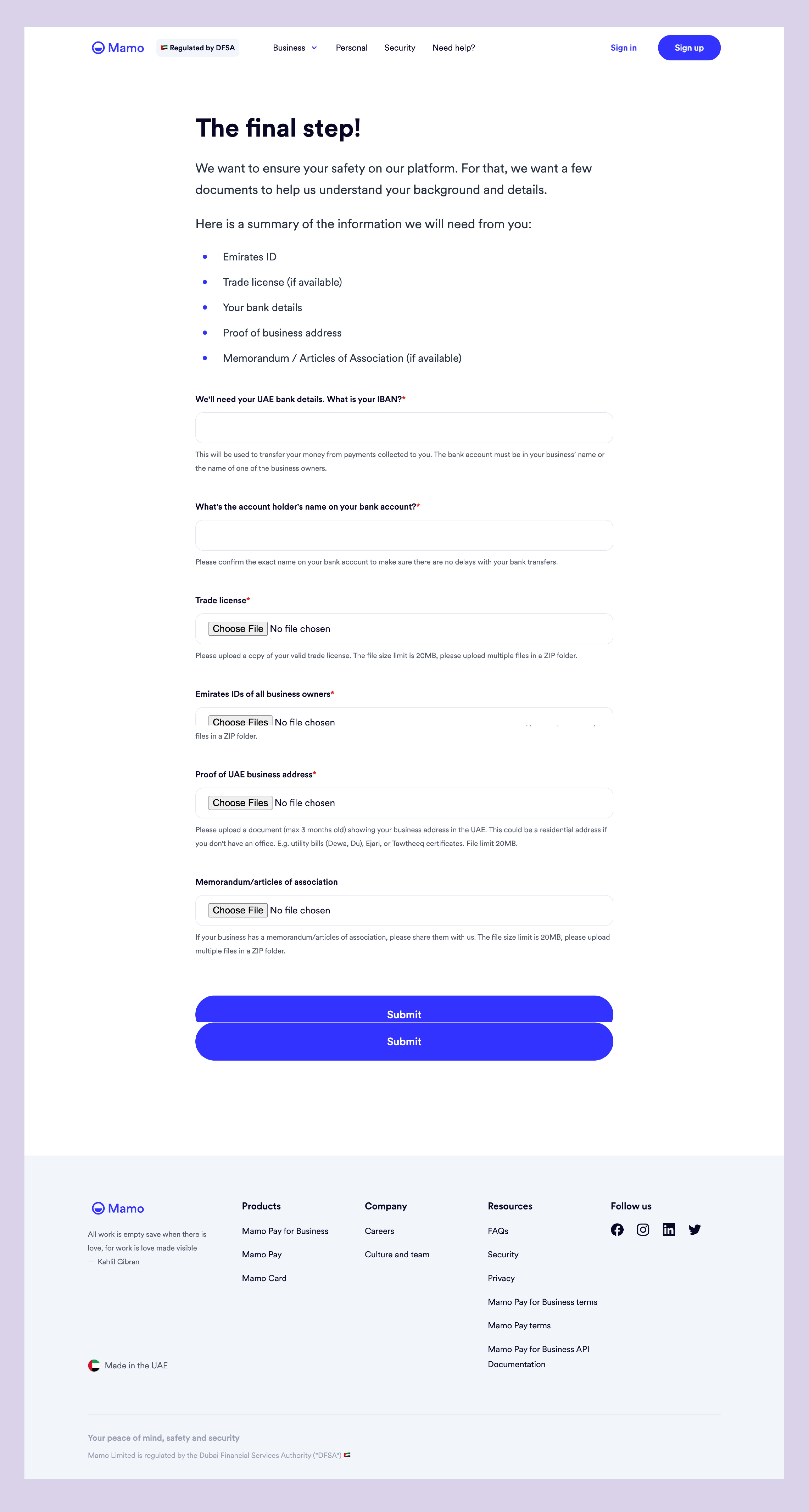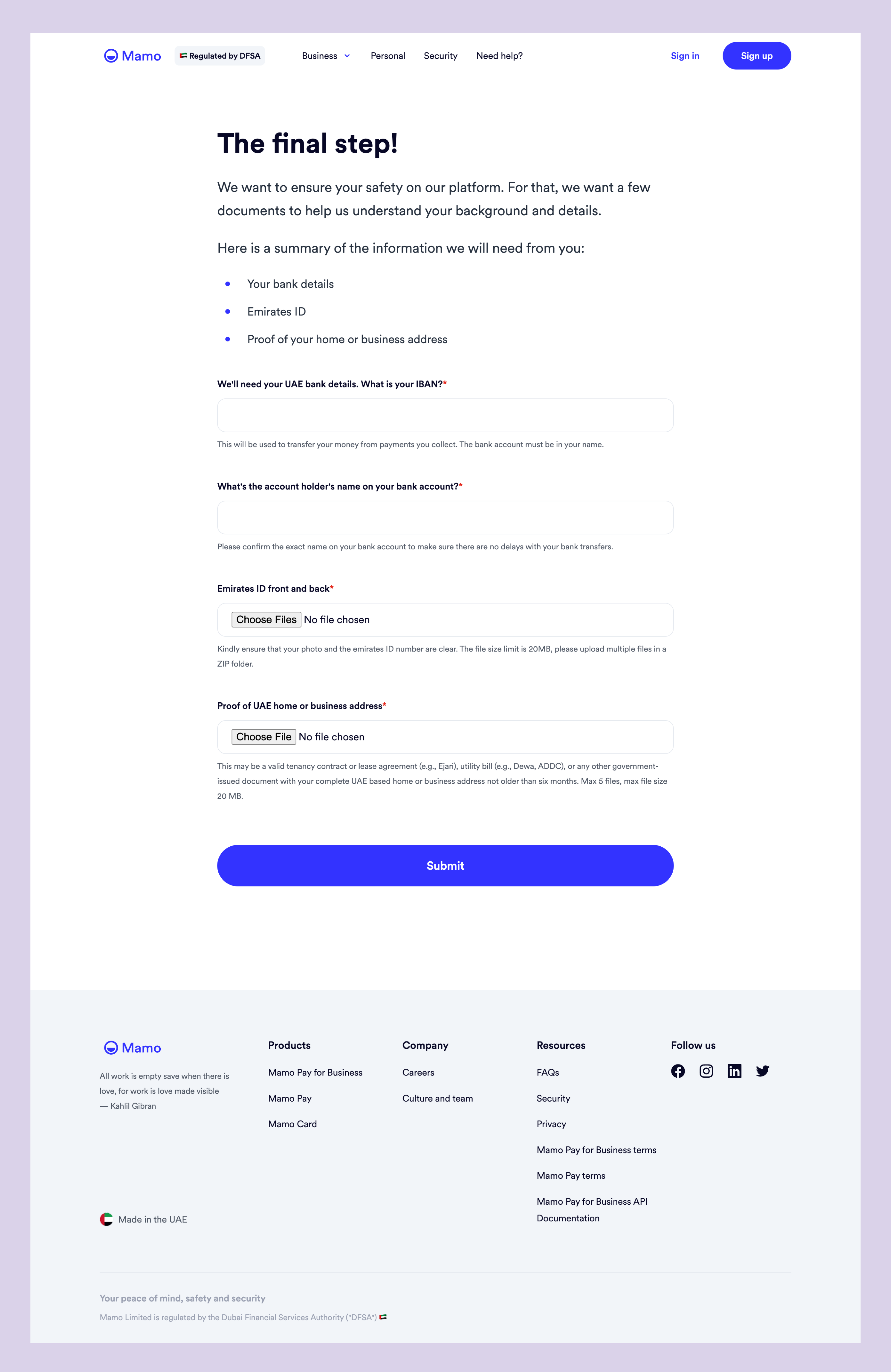 These improvements will help businesses complete the process with greater ease, allowing them to access Mamo's services as soon as possible.